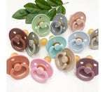 Chpetas Bibs fabricada com a tetina NG de borracha em forma de gota arredondada, a tetina original com a qual se fabricavam as chupetas antes de serem patenteadas as de forma anatómica, ideal para a primeira chupeta do seu pequenote. Conjunto de chichas noturnas, brilham no escuro para ser mais fácil encontrar durante a noite.