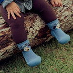 As Attipas são meias com sola de borracha, suave, flexível, antiderrapante, laváveis na máquina e de secagem rápida. As Attipas estão projetadas para permitir a respirabilidade do pé e permite o movimento livre do dedo do pé para melhorar o desenvolvimento cognitivo e motor. Permitem padrões de marcha estáveis ​​que ajudam ao desenvolvimento do cérebro e distribuem uniformemente a pressão do pé.