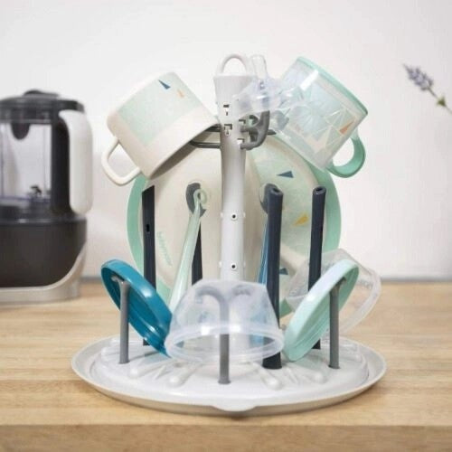Escorredor de Biberão da Babymoov com capacidade para 6 biberões e acessórios, um escorredor compatível com todos os tipos de biberões. Pode ajustar facilmente os ramos do escorredor para que se adaptem completamente às suas necessidades. O depósito de água é amovível para facilitar a limpeza e retirar a água. Promoção de 9/11 até 1/12/25