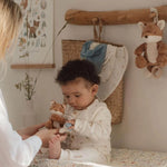 Com o seu design adorável de raposa em tons suaves e um mecanismo musical de puxar, este peluche torna-se rapidamente no companheiro favorito do bebé. Basta puxar suavemente a cordinha para ouvir uma melodia relaxante que acalma e encanta.