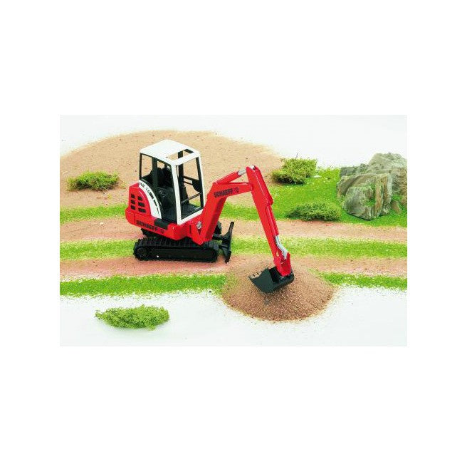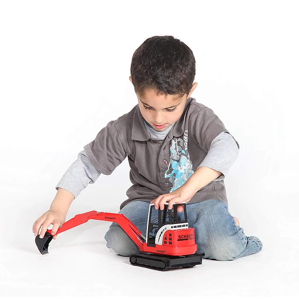 Escavadora Schaeff HR16 Mini da Bruder, ideal para complementar a nossa frota de máquinas de construção. Escavadora com braço totalmente funcional e pá removível, além disso a cabine da mini escavadora é giratória 360º e as esteiras de borracha permitem que a mesma se desloque em total silêncio.
