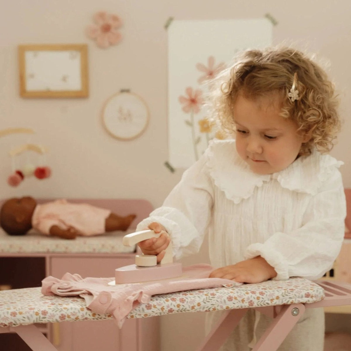 Tábua de passar a ferro em madeira FSC certificada da Little Dutch. Brinquedo ecológico para brincadeiras de imitação.