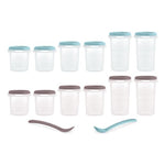 Conjunto de 12 Caixas Herméticas da Miniland, com capacidade de 200ml, 250ml e 330ml cada uma, ideais para conservar, aquecer, congelar ou transportar o leite materno, a primeira papinha do seu bebé, bem como qualquer outro tipo de alimento sólido ou líquido.