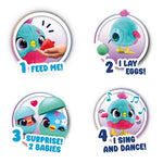 Peluche Interativo Jenny Chick-A-Boo, uma divertida e imaginativa mãe galinha da Família Funtasy! Dá o morango à Jenny e ela vai cantar, dançar e pôr ovos com pintos surpresa lá dentro. Apanha os ovos, choca-os e descobre os pintainhos fofos!! Uma brincadeira emocionante e interativa! Ao pressionar a cabeça da galinha ela começa a dançar com canções alegres e cativantes. Idade recomendada: 3 anos+