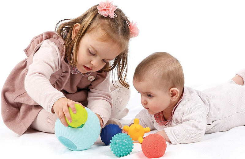 Bolas com nervuras, lisas ou pontiagudas, grandes ou pequenas, todas as bolas estimulam o tato, a destreza e a coordenação dos movimentos das crianças. O seu material plástico flexível e leve é resistente a dentadas e movimentos bruscos. Também pode ajudar o bebé a aliviar as gengivas quando os seus dentinhos estão a romper. Muitas oportunidades para brincar, divertir-se e partilhar momentos de cumplicidade com a família!