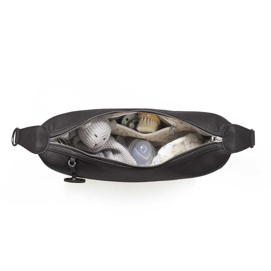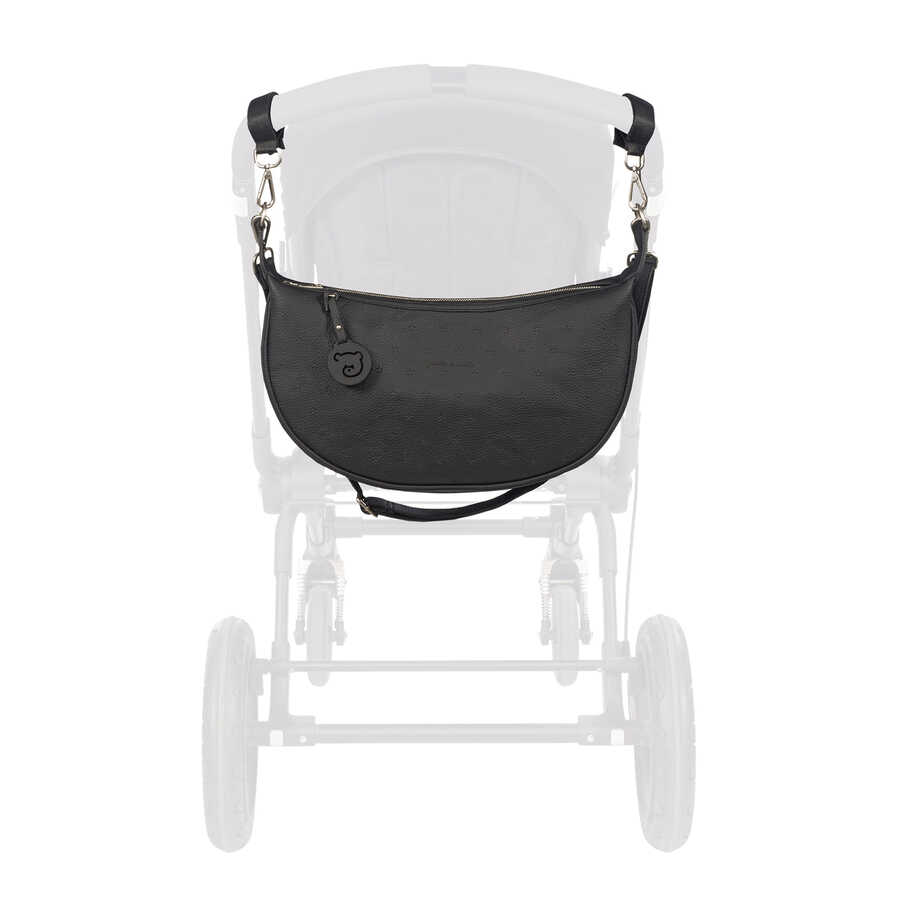 Mala Crossbody Gondola da Colecção London da Pasito a Pasito, uma mala muito elegante em couro sintético preto, ideal para levar tudo o que precisa para o seu bebé numa curta saída.