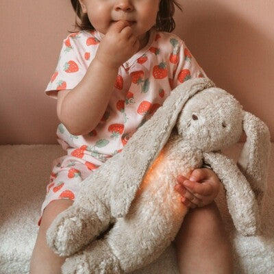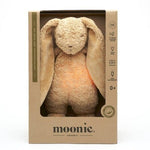 Coelhinho em peluche da Moonie um amigo para o seu pequenote que o acompanhará durante a noite. Um peluche calmante com 5 sons diferentes e 7 luzes, onde a luz mais suave permite que possa cuidar do bebé sem necessidade de ligar uma luz mais forte. Ursinho com sensor de choro que liga automaticamente a luz e som (selecionado) quando o bebé começa a chorar, acalmando assim o bebé. O coelhinho da Moonie também é o companheiro perfeito para crianças mais velhas, se estas tiverem pesadelos ou até medo do escuro, podendo ser utilizado apenas para luz de presença.