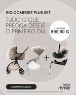 O conjunto completo apresenta o carrinho Rio, alcofa, cadeira automóvel grupo 0+ Baby-Safe Pro e base isofix, proporcionando uma solução perfeita do nascimento até aos 4 anos de idade.