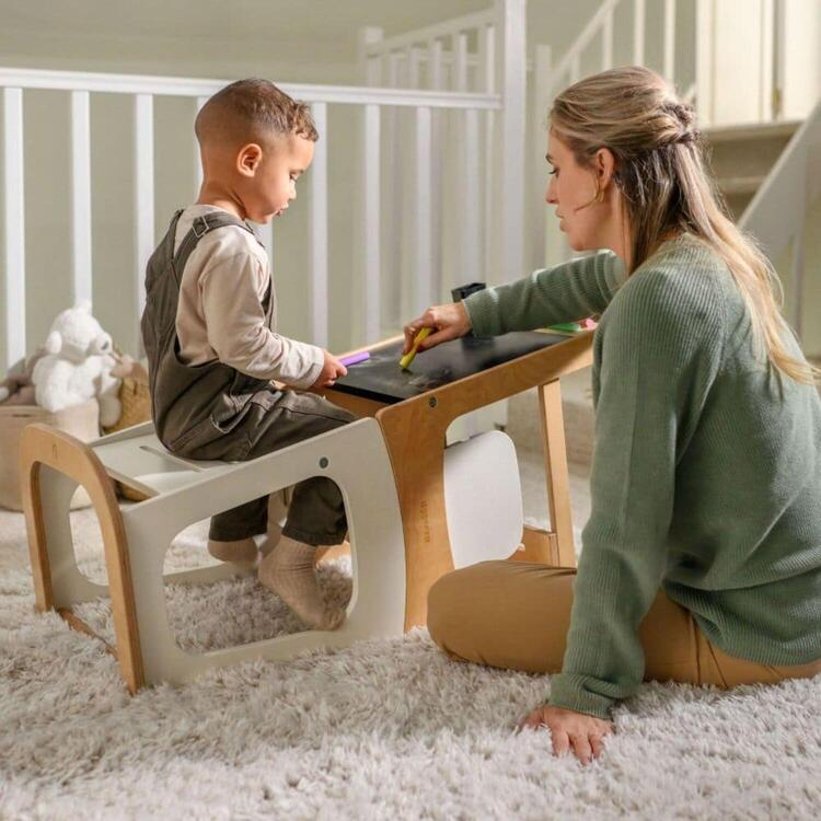 Torre de aprendizagem Toucan 3 em 1, é a plataforma ideal para o seu pequenote participar nas atividades familiares em casa. A altura ajustável garante que a criança consegue sempre chegar à bancada de forma segura e confortável, enquanto o quadro integrado proporciona uma plataforma de expressão criativa. Quer seja utilizada como banquinho ou como mesa e cadeira, proporciona ao seu pequenote um espaço confortável onde pode relaxar, exprimir a criatividade ou participar nas atividades que o rodeiam.