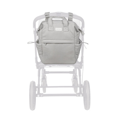 Mochila de Maternidade com muda fraldas da Coleção Little Bloom da Pasito a Pasito, uma mochila que apresenta um design moderno, desportivo e urbano. Mochila leve e resistente, o  ideal para levar tudo o que o seu bebé necessita. Mochila com um padrão vichy, feita de lona 100% algodão. Feita com materiais de alta qualidade, sem corantes azóicos, Ftalatos nem substâncias nocivas para a saúde. Mochila possui um sistema de fixação universal para poder usar nos carrinhos de passeio. Perfeita para o uso diário, esta mochila de maternidade Pasito a Pasito combina estilo e funcionalidade, tornando-a essencial para mães que buscam qualidade e design.