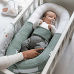 Ninho Cocoon da Doomoo é um ninho que se adapta à morfologia do bebé, permitindo ao recém nascido,uma sensação de conforto e segurança durante a transição da posição fetal na barriga da mãe para o berço.Com cinto amovível que possibilita manter o bebé virado para cima de forma cómoda. Este ninho pode ainda ser aberto no fundo,adaptando-se ao crescimento da criança