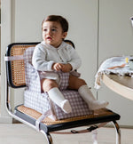Cadeira de papa portátil da Colecção Caetana da Walking Mum é super prática para levar para todo o lado. Fácil de utilizar, basta prender com os cintos às nossas cadeiras usando duas alças para o assento e uma para o encosto, aumentando assim a criança em 10 cm e sempre em segurança graças ao seu arnês de 3 pontos. Cadeira com compartimento lancheira na base para levar os snacks do seu pequenote.