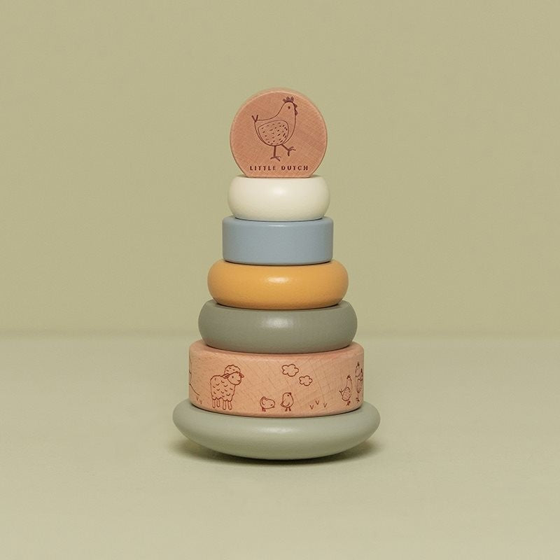 Argolas de empilhar em madeira da prestigiada marca Little Dutch, modelo desenhado para ajudar a desenvolver a coordenação olho-mão de uma forma divertida. As crianças são incentivadas a colocar os anéis na sequência correta e a empilhá-los na torre. Sempre em pé, a torre não para de balançar, dificultando o objetivo de empilhar os anéis. Idade Recomendada: 12 meses+