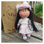 A boneca Mia e feita à mão em Espanha, pode ficar em pé e têm o corpo com membros dobráveis.