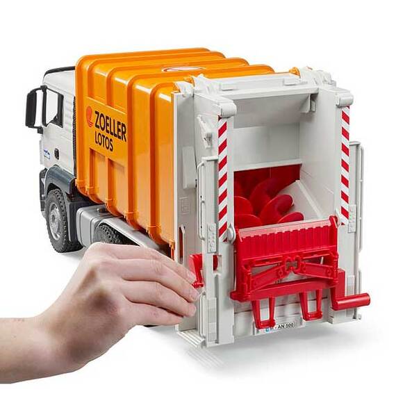 Camião do Lixo MAN TGS com Carregamento Traseiro da Bruder ideal para iniciar o faz de conta e dar asas à imaginação.