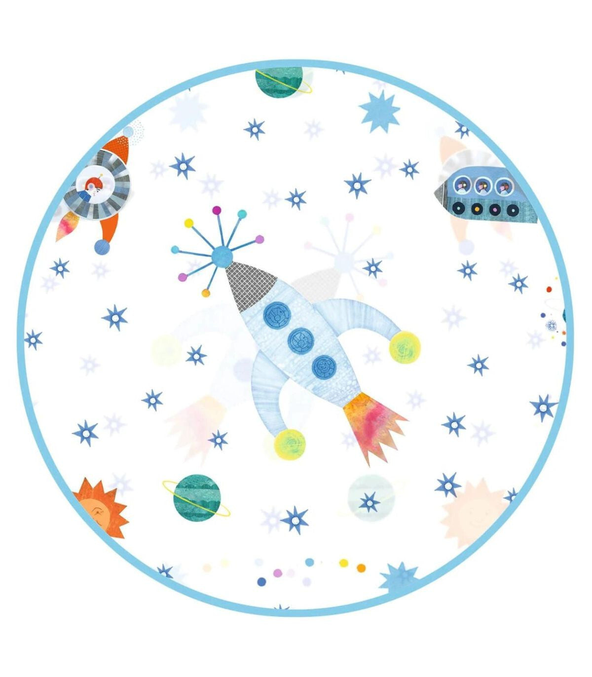 • Design divertido e colorido com ilustrações de foguetões espaciais típicas da Djeco