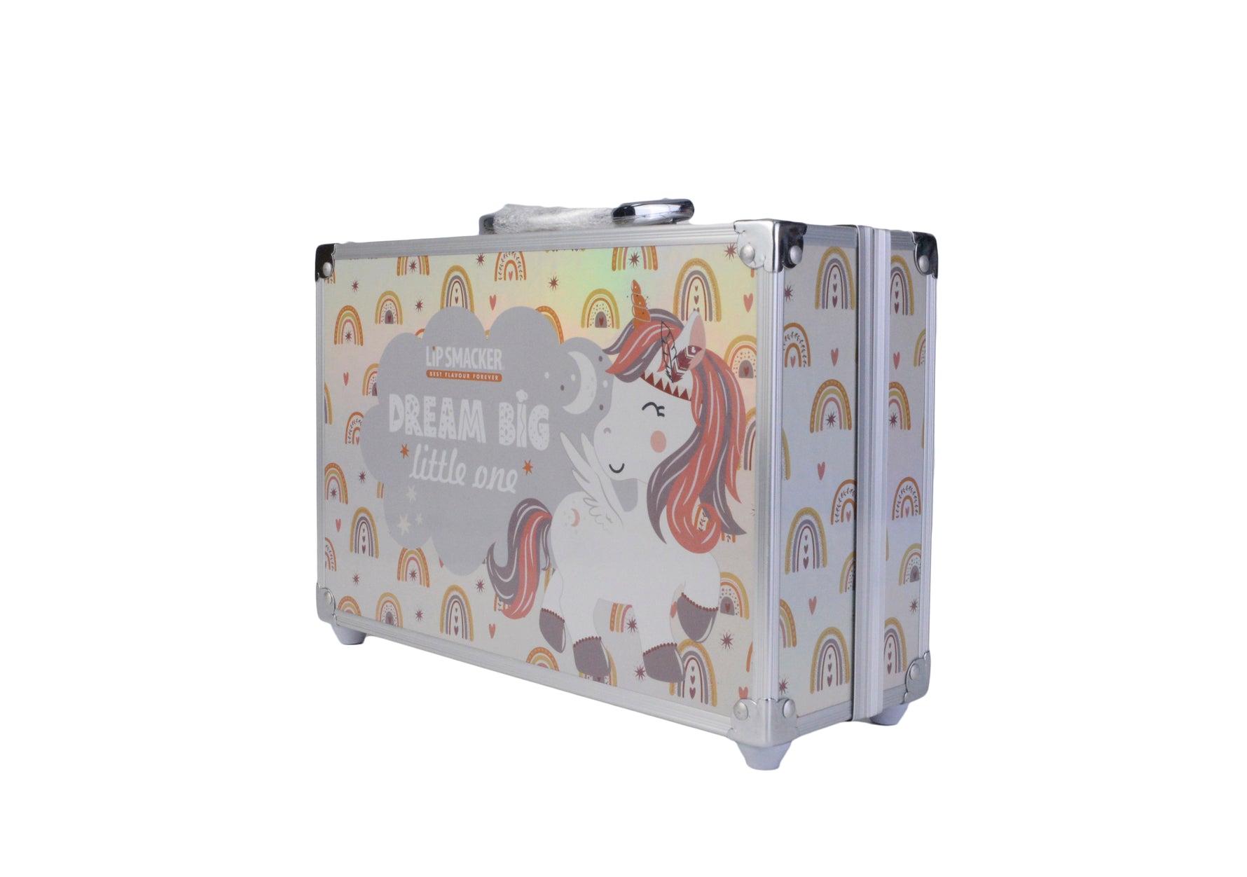 Magia e cor numa mala de maquilhagem encantadora! A Mala de Maquilhagem Unicórnio Color apresenta um design mágico com tema de unicórnio e inclui uma seleção completa de produtos de maquilhagem vibrantes e seguros para crianças