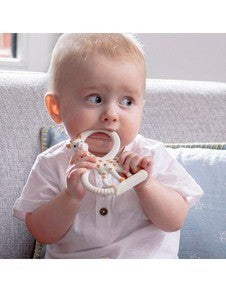 O anel de dentição Sophie La Girafe à base de borracha 100% natural é ideal para aliviar dores nas gengivas do bebé, com diferentes texturas para aliviar ao bebé nas diferentes etapas do processo de dentição. Sophie La Girafe é o primeiro brinquedo para bebés que desperta todos os seus sentidos. Alivia a dor quando surgem os primeiros dentinhos do bebé.